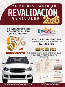 Aprovecha el 5% de descuento en tu revalidación vehicular durante el mes de enero de 2026.