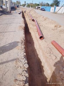 El H. Ayuntamiento de Altar, presidido por el alcalde Lic. Luis Angel Valenzuela Mendivil, a través de la Dirección de Obras Públicas, llevó a cabo la ampliación de la red de alcantarillado en la colonia Benito Juárez.