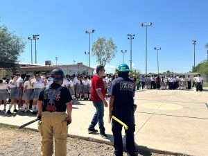 Escuela Secundaria No. 10 Prof. Efraín Buenrostro participando en el 2do. Simulacro Nacional en coordinación con Protección Civil, Bomberos Voluntarios y Seguridad Pública Altar.