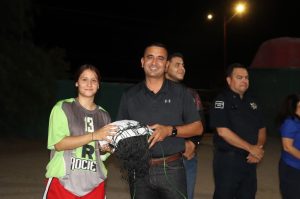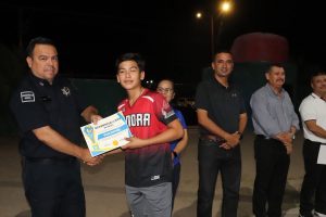 El Presidente Municipal, Luis Angel Valenzuela Mendivil, encabezó la ceremonia, acompañado de la Secretaria del Ayuntamiento L.C.S. Ibet Miranda Salas;el Regidor Mtro. Rosario Soto Soto el C. P. Francisco Traslaviña Calderón; el Comisario de Seguridad Pública Altar, Lic. Humberto López; el Director del Instituto Municipal del Deporte, Q.B.P. Marcos Burruel, y la Presidenta de la liga, Lic. Fátima Méndez.